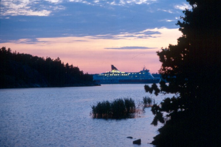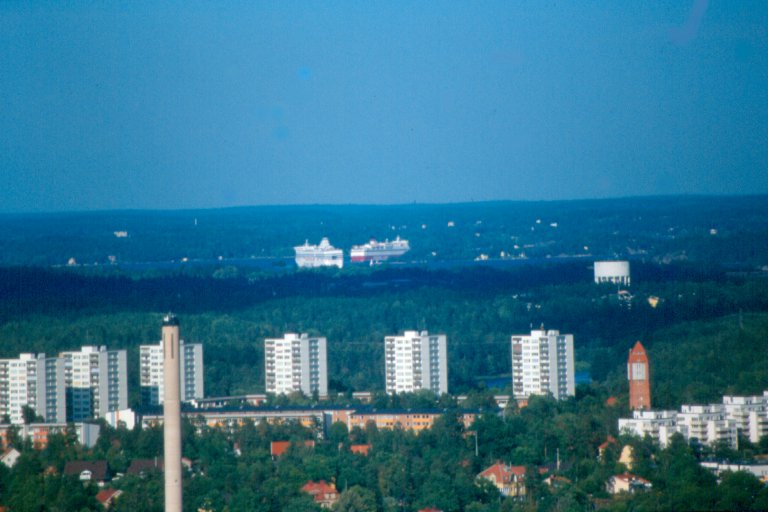 Von oben kann die Ruderstrecke schon mal betrachtet werden. Interessant ist vor allem, wie die riesigen Finnland-Fähren sich durch die Schären winden.