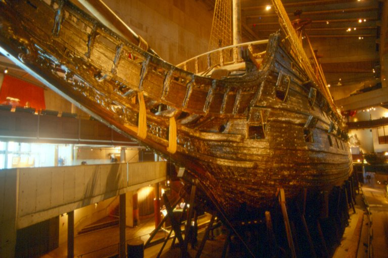Nicht weit von Djurgården entfernt liegt das Freilichtmuseum auf der Insel Fjäderholmarna (rechts), ideal für eine erste Probefahrt. Fjäderholmarna ist nicht wirklich klein, man beachte die Boote dort und vor der Nachbarinsel. Trotzdem wirkt das Schiff, als wäre es ein Modell im falschen Maßstab.