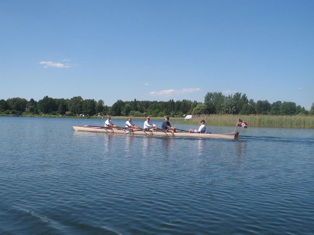 28. Juni 2010: Die Ruderbereitschaft ist wieder größer. Heute geht es mit zwei Booten nach Canow. Aber vorher wird gefrühstückt. Außerdem treffen von uns unerwartet Wanderruder vom DRC (Deutscher Ruderclub von 1884 e. V. Hannover) ein, darunter mit Adolf vom HRC sogar ein guter Bekannter. Die Gruppe fährt in unsere Richtung.