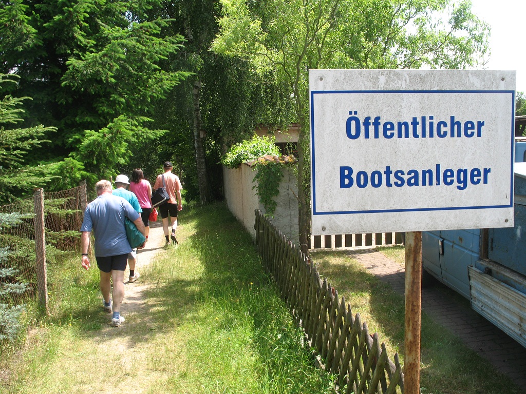 Hier noch mal ein Bild von der Einfahrt ... für einen Vierer reicht es. Der Kanal selbst ist 20 Meter breit. "Motorboote erlaubt - 0,80 m tief"
