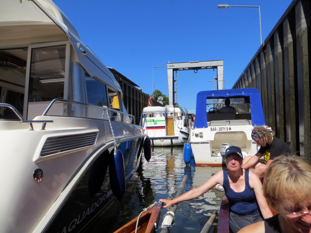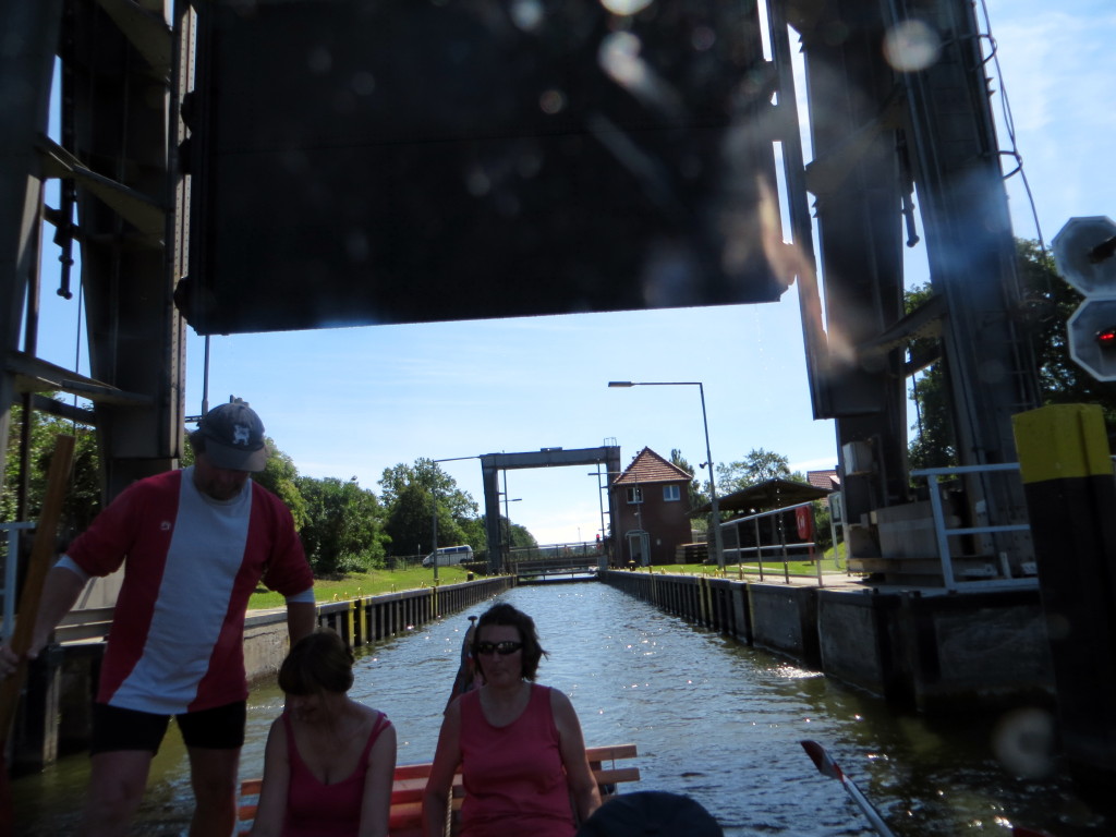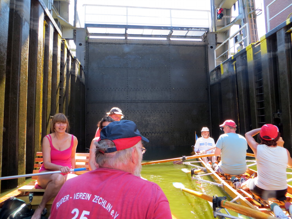 24. Juli 2012: Morgens geht es von Mirow aus wieder ein kleines Stück zurück, weil wir der Müritz-Havel-Wasserstraße folgen wollen. Nach einiger Zeit befinden wir uns also in der Schleuse Mirow, wo es wirklich ordentlich nach oben geht.