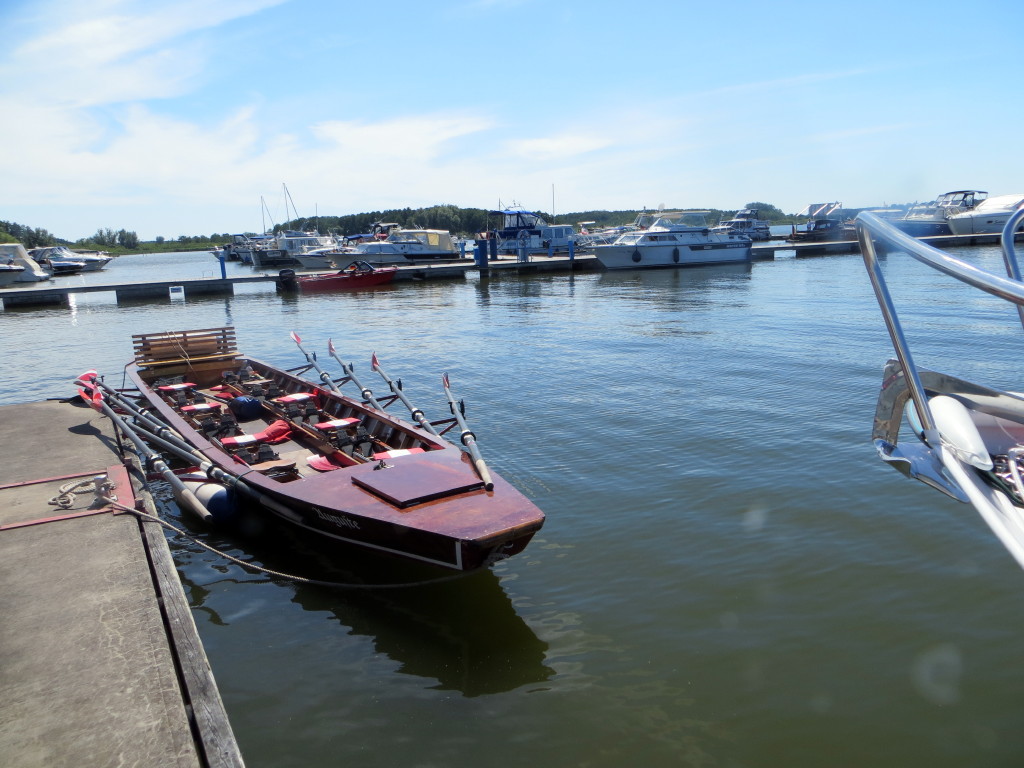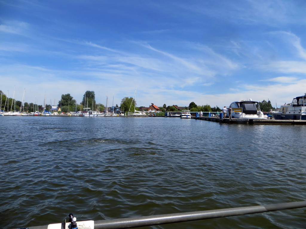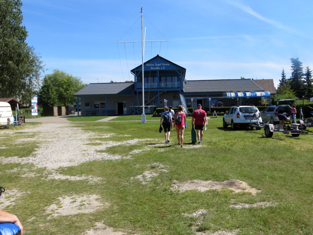 Vom Sumpfsee aus ist es nicht mehr weit bis in die Müritz. In die kleine wenigstens, die zwar immer noch in jede Richtung gut einen Kilometer misst und rund drei Quadratkilometer Oberfläche hat, aber mit der eigentlichem Müritz dennoch nicht verglichen werden kann. Hier am Ufer liegt Rechlin, wo wir beim Segelverein einkehren. Vom Gastanleger bis zur Gastronomie ist es noch ein gutes Stückchen über die Steganlage, hier an der Müritz ist halt doch mehr los.