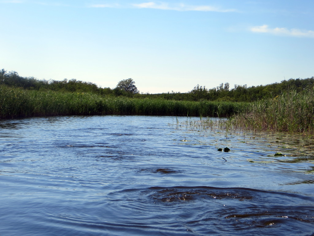 Die nächsten Kilometer sind kanalartig, wenn auch im Grünen, abgesehen von einer kleinen Aufweitung nach 1,5 Kilometern ist erst weitere etwa 5 Kilometer später mit dem Sumpfsee eine breitere Stelle erreicht.