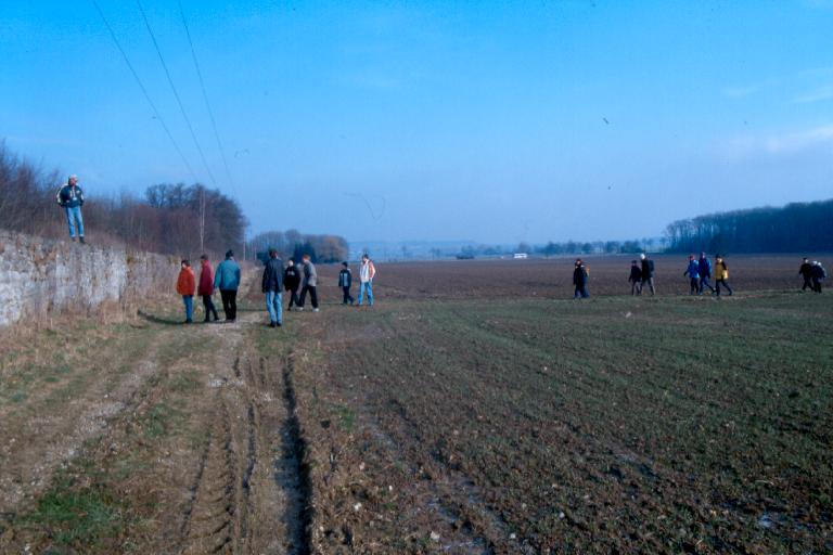 Ein Teil der Wandergruppe, Mensch und Tier, ließ es sich nicht nehmen, die Mauer zu überwinden. Doch andere wollten lieber um sie herum gehen, sei es, weil sie im gesitteten Alter stehen, sei es, weil sie Diskussionen mit dem Förster aus dem Weg gehen wollten, sei es, weil sie zu viel Gepäck dabei hatten. (Heinz-Willis Ausrede)